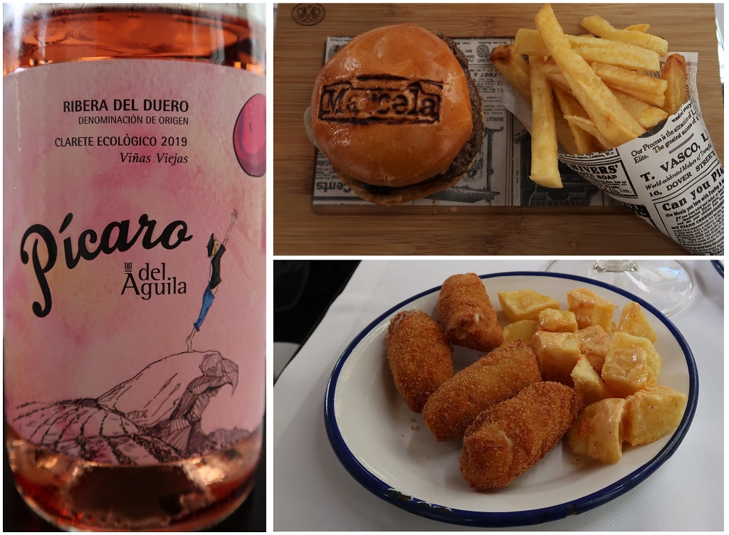 We decided to keep it simple for our linner (lunch/dinner). Tom had a good ole hamburger, while Janet went with croquettes and a salad. What made lunch so special was this small glass eatery offered a wine that Tom had not been able to find in a two-year search. It is sold in the US, but not Virginia. (You gotta love the 3-tier system we endure in the Commonwealth – so much for free trade). The wine is a clarete and although it looks like a rosè, it really is different. Clarete is a blend of red and white grapes which are co-fermented together. The field blend of red grapes and white grapes are vinified like a red wine. Rosè wines are usually all red grapes and made like a white wine. One will find tannins in a clarete, and this pinkish red juice is FULL of flavor. Needless to say, this long sought-after wine was the highlight of our meal.