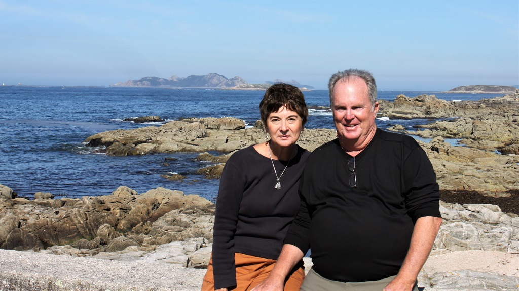 Off Ramp: Over thirty years ago, Tom returned home from a work trip in California raving about a bottle of wine he enjoyed and had a second bottle of this wine in his carry on. (Remember those days??). We drank that bottle on our following anniversary and did so on every anniversary for many years to come. The winery was sold and the winemaker went on to other projects, resurfacing with a new wine label on a very small scale a few years later. Tom happened to bump into this new limited offering, once again on a work trip. On a whim Tom emailed the winemaker and he responded. Since then, the two of them have communicated electronically and during COVID the winemaker was nice enough to do a private zoom tasting for us and few friends. He is now retired and living part time in Baiona with hopes of a permanent status.